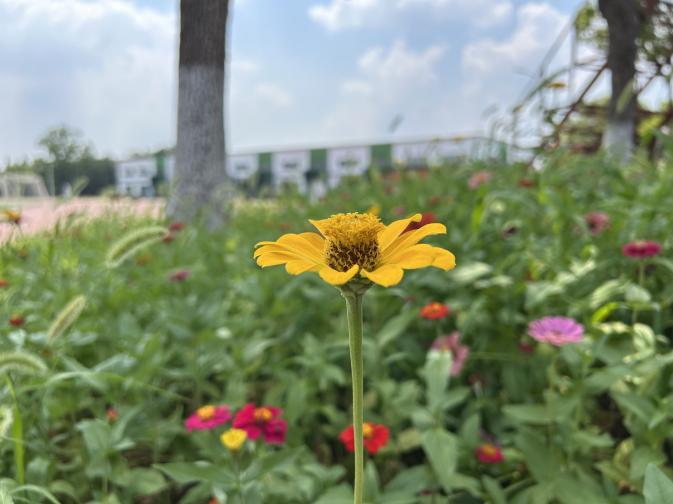 开营现场,巨大的横幅高高悬挂,“evo视讯官网科技暑期集训营” 几个大字格外醒目,校园里盛开的花儿将整个校园装点得充满活力。